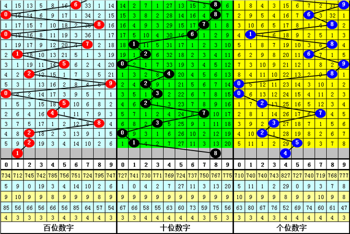 第三位杀号:第三位上期出现奖号5,该位历史上奖号5已开出了727次,最近100次第三位开出5时,下期号码0-9分别落号:号码9、1→12次,4、7→11次,2、3、8→10次,0、5→9次,6→6次。