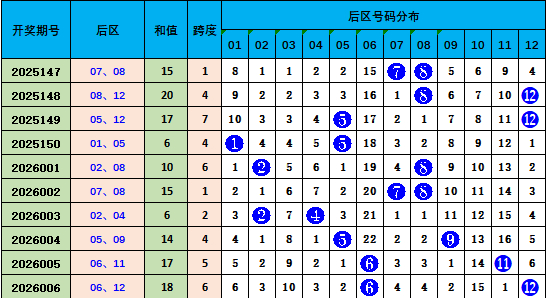 一区(01-12):上期开出2个奖号05,12。最近10期该区开出15个号码,总体表现较冷。本期该区关注2个号码03,10。