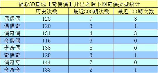 上期开出奖号302,其奇偶类型为:奇偶偶,该类型组合历史上开出了1035期,最近100期开出了10期。