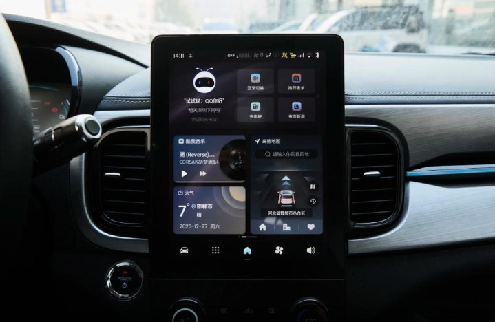 内饰是2026款小蚂蚁本次改款升级的重点,旨在提升座舱的科技氛围与使用便利性。核心变化在于全系标配了10.4英寸的竖向高清中控大屏,搭配“8”字形内嵌式全液晶仪表盘,构成了车厢内的视觉与信息交互中心。基于2150毫米的轴距,小蚂蚁采用了2门4座布局。实际体验中,前排空间对于标准身材的成年人而言是足够的;后排座位更适用于儿童乘坐或成人短途应急,长时间乘坐会感到局促。