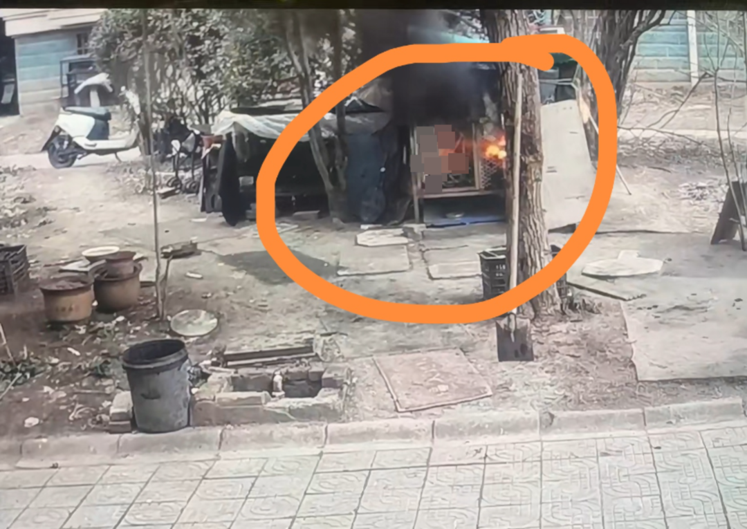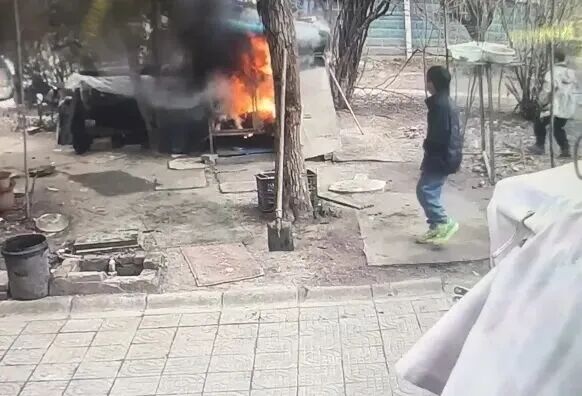 12时35分40秒左右,两个小男孩再次来到狗笼外,共同点燃一支烟花,这时狗笼内的烟稍大,他们观望后没有再将烟花扔进笼内。随后,金沙电玩城app下载黑衣小男孩拿着烟花去追一只鸡,白衣小男孩在狗笼外观察后大叫“着火了”。12时37分,狗笼内有浓烈的黑烟升起,不久烈火将笼子吞噬。