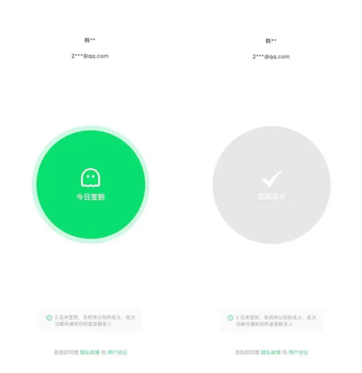 换言之,它直接呈现在用户面前的就一个主动功能——签到。另一个被动功能,要在用户连续两天没签到后触发。