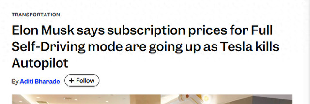 [环球网科技综合报道]1月23日消息,据《商业内幕》报道,特斯拉首席执行官埃隆·马斯克表示,特斯拉完全自动驾驶(FSD)监督版的价格将会上涨。