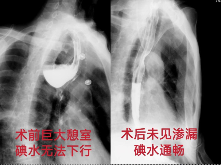根据大小,食管憩室可分为小型(<2厘米)、中型(2-5厘米)及大型(>5厘米),而张先生的憩室横径达10厘米,属于罕见的大型憩室。更特殊的是,其憩室开口长度约5厘米,位于颈段食管入口处,向下延伸10厘米进入胸腔至主动脉弓水平,如同一个“越位”的房间,挤占了正常食管通道,mg平台app导致食物几乎全部坠入憩室囊袋,难以进入胃中,进而引发呕吐和呛咳。巨大食管憩室不仅会导致患者营养不良、体重下降,还可能因食物贮留引发憩室炎、出血、穿孔,甚至存在癌变风险。