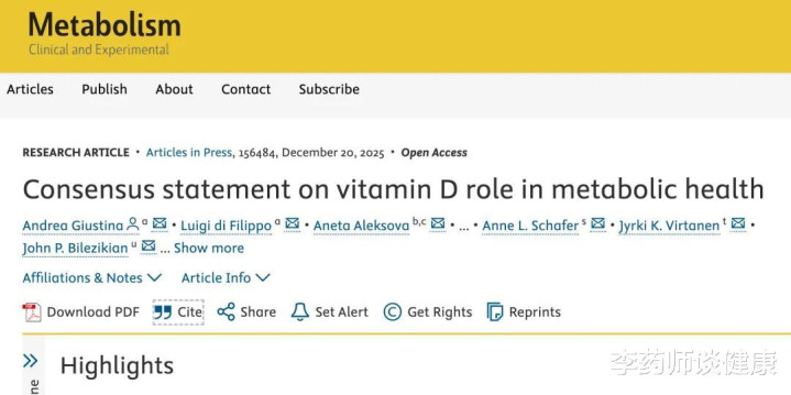 Consensus statement on vitamin D role in metabolic health, Giustina, Andrea et al. (2025) Metabolism - Clinical and Experimental, Volume 0, Issue 0, 156484.